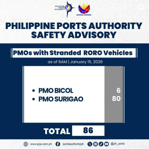 ipina aalaman ng Philippine Port Authority (PPA) sa mga pasahero na umaabot na sa 88 bilang ng mga stranded na RORO vehicles sa pantalan dahil sa mga kanseladong byahe dulot ng Tropical Depression “Ada.”
