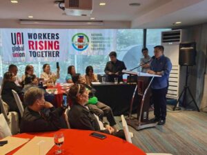 During the event, Senator Go acknowledged the key officials, including Bro. Roland Dela Cruz, President of UNI-PLC; Bro. Khonan Cerial, President of the National BHW Confederation; Sis. Christy Hoffman, General Secretary of UNI Global Union; Bro. Rajendra Kumar Acharya, Regional Secretary of UNI Asia & Pacific; Bro. Hovig Melkonian, Organizing Director of UNI Asia & Pacific; Sis. Myrna Gaite, President of the BHW Federation–National Capital Region; Bro. Rey Jose “Bong” Soriano, OIC of the Training and Public Division of the Occupational Safety and Health Center; Sis. Catherine Gayo-Villon, Education and Information Officer of the Associated Labor Unions (ALU), and Ms. Ma. Theresa Santiago, National BHW Coordinator of the Department of Health–Central Office.