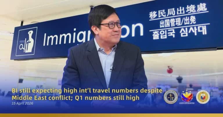 The BI said that during the 1st quarter of 2026, the BI processed a total of 4,218,683 arrivals and 4,521,001 departures, versus 3,871,492 arrivals and 4,196,492 departures during the same period last year.